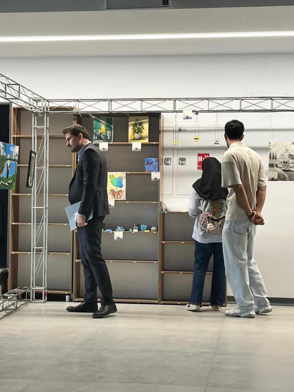 ✨ آثار دانشجویان مجموعه ای متشکل از نقاشی سیاه قلم و رنگ روغن ،معرق کاری ، خوشنویسی و مجسمه سازی می باشد .