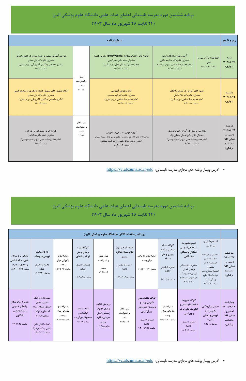 آغاز ششمین دوره مدرسه تابستانی اعضای هیات علمی دانشگاه علوم پزشکی البرز