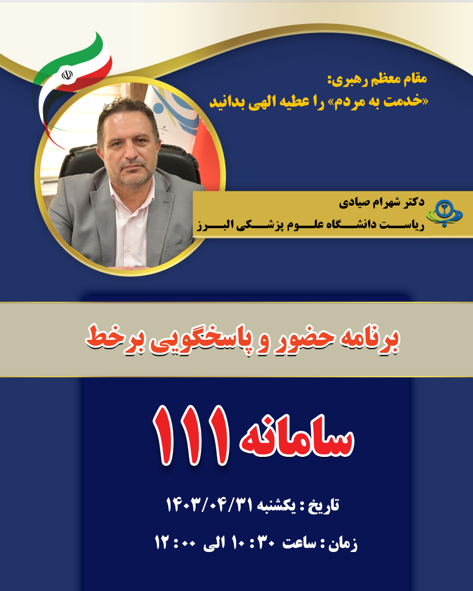 اطلاعیه پاسخگویی بر خط رئیس دانشگاه علوم پزشکی البرز در 31 تیرماه