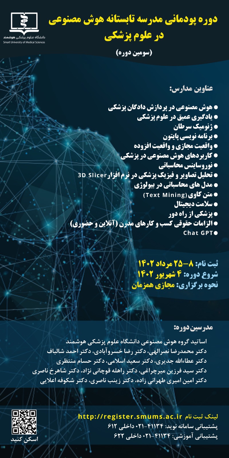 دوره پودمانی مدرسه تابستانه هوش مصنوعی در دانشگاه علوم پزشکی