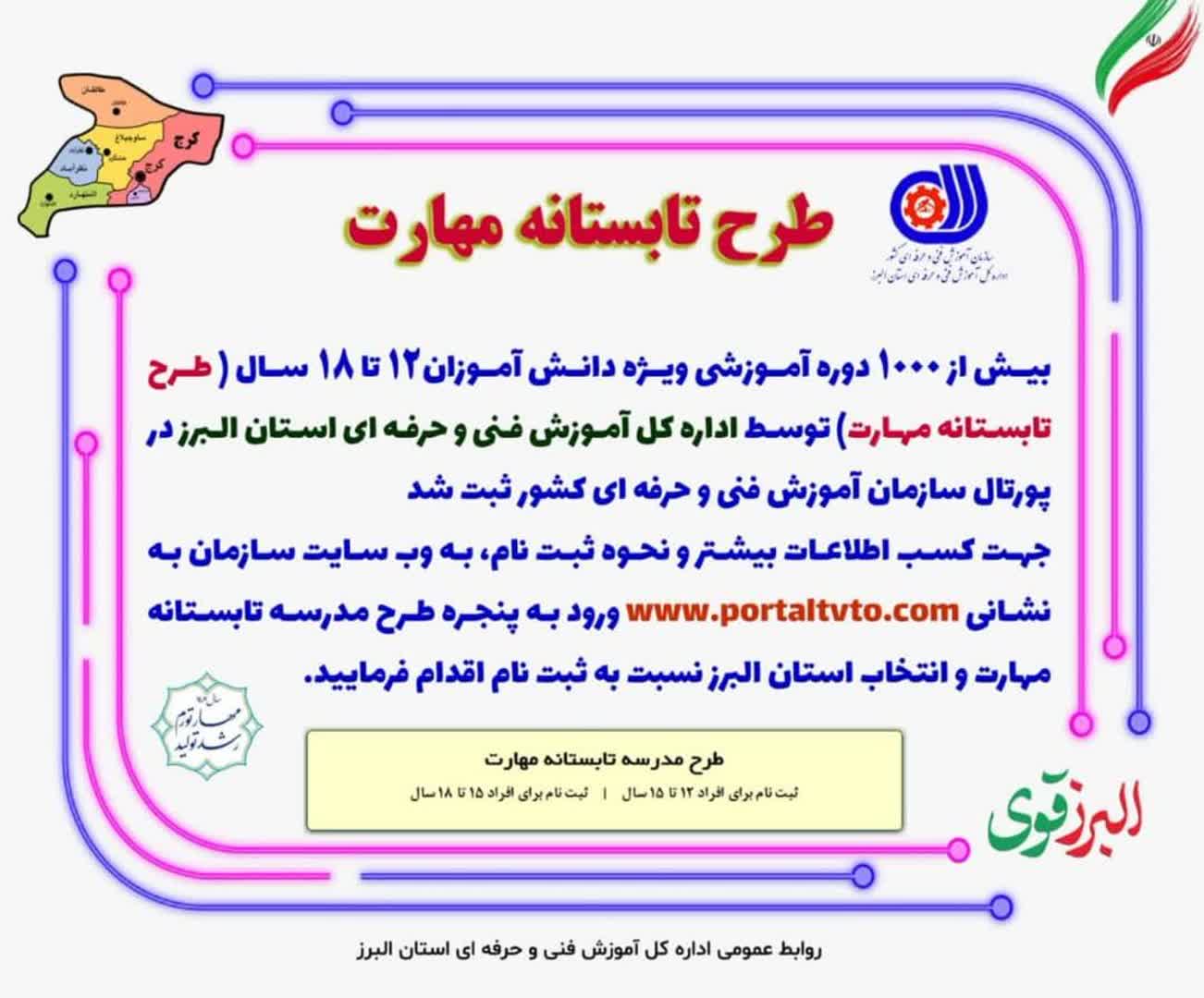 طرح رایگان تابستانه مهارت ویژه دانش آموزان 12 تا 18 سال