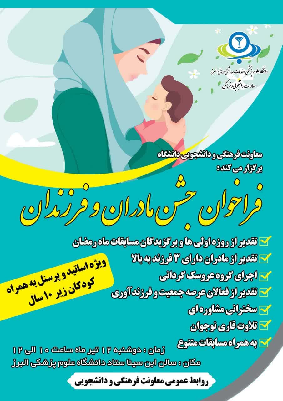 فراخوان جشن مادران و فرزندان در دانشگاه علوم پزشکی البرز/12 تیرماه