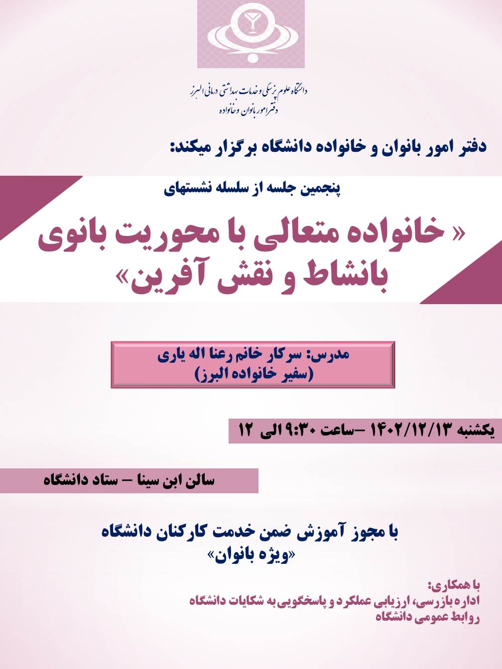 پنجمین نشست خانواده متعالی با محوریت بانوی با نشاط و نقش آفرین در دانشگاه برگزار می شود