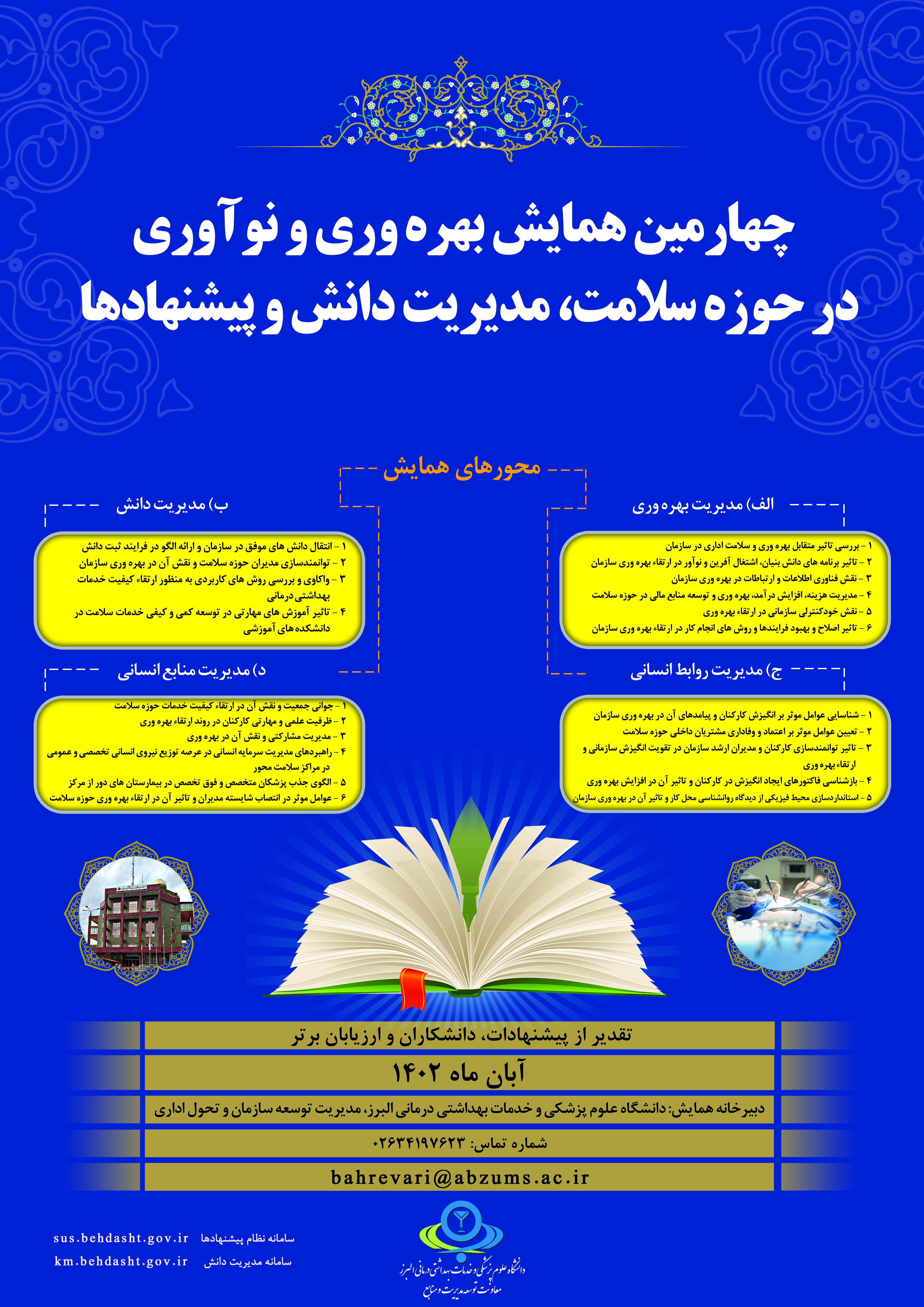 چهارمین همایش بهره وری و نوآوری در حوزه سلامت ، مدیریت دانش و پیشنهادات / آبان 1402