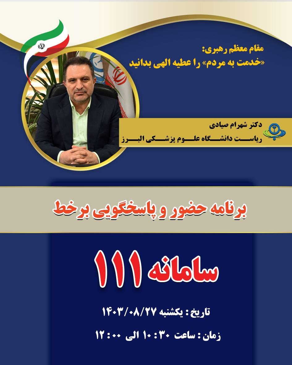 اطلاعیه / پاسخگویی بر خط رئیس دانشگاه علوم پزشکی البرز در 27 آبان ماه