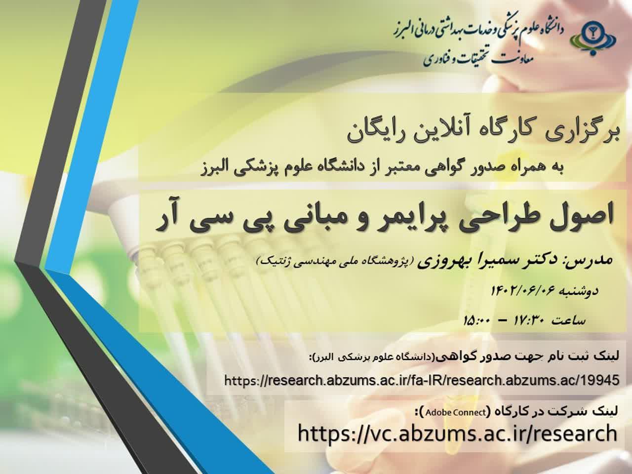 کارگاه آنلاین رایگان اصول طراحی پرایمر و مبانی پی سی آر به همراه صدور گواهی معتبر از دانشگاه علوم پزشکی البرز