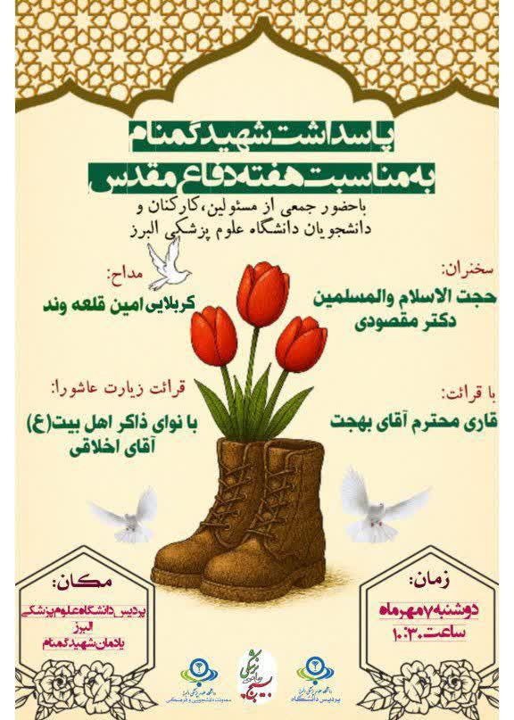 فراخوان دعوت در آیین غبارروبی مزار شهید گمنام در پردیس دانشگاه علوم پزشکی البرز