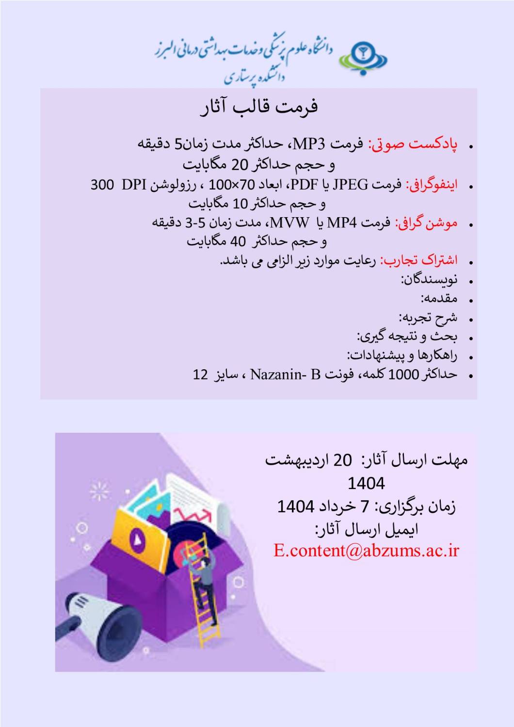 محتوای آموزشی خود را بر اساس موارد و جزئیاتی که در پوستر فرمت قالب آثار ذکر شده است تهیه بفرمائید.